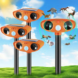 Advanced Smart Motion Detection: Ultrasonic repeller‘s passive infrared sensor (PlR) sensitively detects movement and triggers the ultrasonic speaker to emit powerful ultrasonic waves that people can't hear.A combination of sound waves and visual disturbances can target an animal's auditory and nervous systems, making them feel uncomfortable and repelling them.