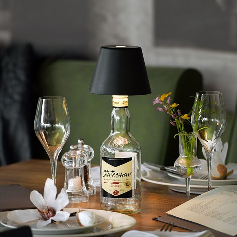 A good DIY ornament idea! The innovative wine bottle lamp head TOP not only provides a cordless rechargeable lamp but also gives old glass bottles a new lease of life as a one-of-a-kind decoration. It is very easy to DIY lamps with the decorative lamp TOP. The cone-shaped silicone stopper can fit different types of bottlenecks. ensuring a secure fit. It comes with a dimmable LED light source with a touch dimmer on the top. With two easy-matching colors to choose from. the waterproof bottle lights TOP are creative and exquisite DIY gift ideas suitable for both indoor and outdoor use. Try to make liquor bottle lamps immediately!